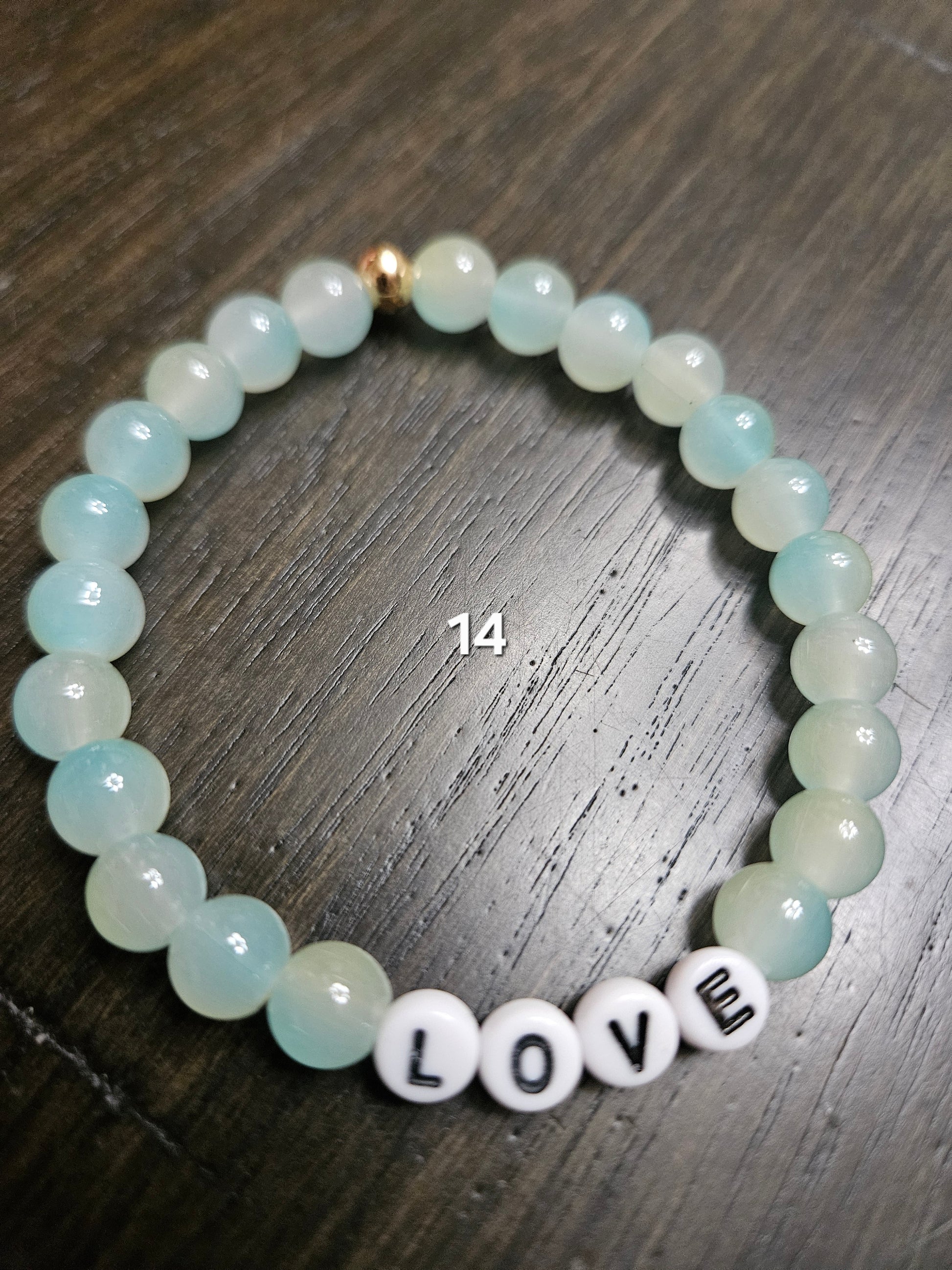 -Bracelets are handmade with 8mm or 10mm glass beads, elastic string, and come with a charm or charms, spacers (14K gold plated or stainless steel), or no spacers.